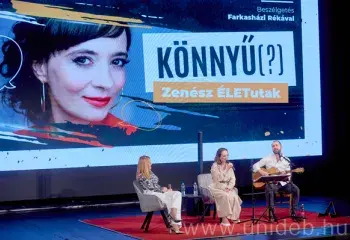 Mi a közös egy országos hírű szappanoperában, a megzenésített kortárs versekben és a Pixar-filmek logikájában? Erre kaptak választ a hallgatók a Debreceni Egyetem Könnyű(?) – Zenész ÉLETutak sorozatának legutóbbi estjén. Farkasházi Réka színésznő és Csiszár Ferenc zenekarvezető a „gyerekműfaj” komolyságáról, a hitelességről és a művészi újrakezdésről is beszélt az oDEon Színházban.