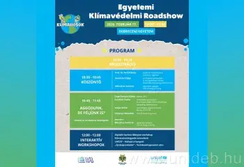Kerekasztal-beszélgetéssel és négy interaktív műhellyel várja az érdeklődőket február 17-én, kedden az UNICEF Magyarország Egyetemi Klímavédelmi Roadshow-ja a Debreceni Egyetem Főépületében. A program célja, hogy a fiatalok aktív részvételével induljon párbeszéd a fenntarthatóságról, a klímaszorongás kezeléséről és a cselekvési lehetőségekről.